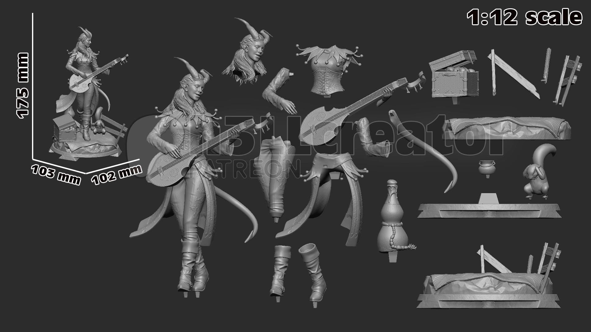 Alfira, the talented bard from Baldur's Gate 3, is brought to life in this stunning 1:12 scale resin statue. This unpainted, highly detailed 3D printed model is perfect for any fan of the game and aspiring mini-painters.