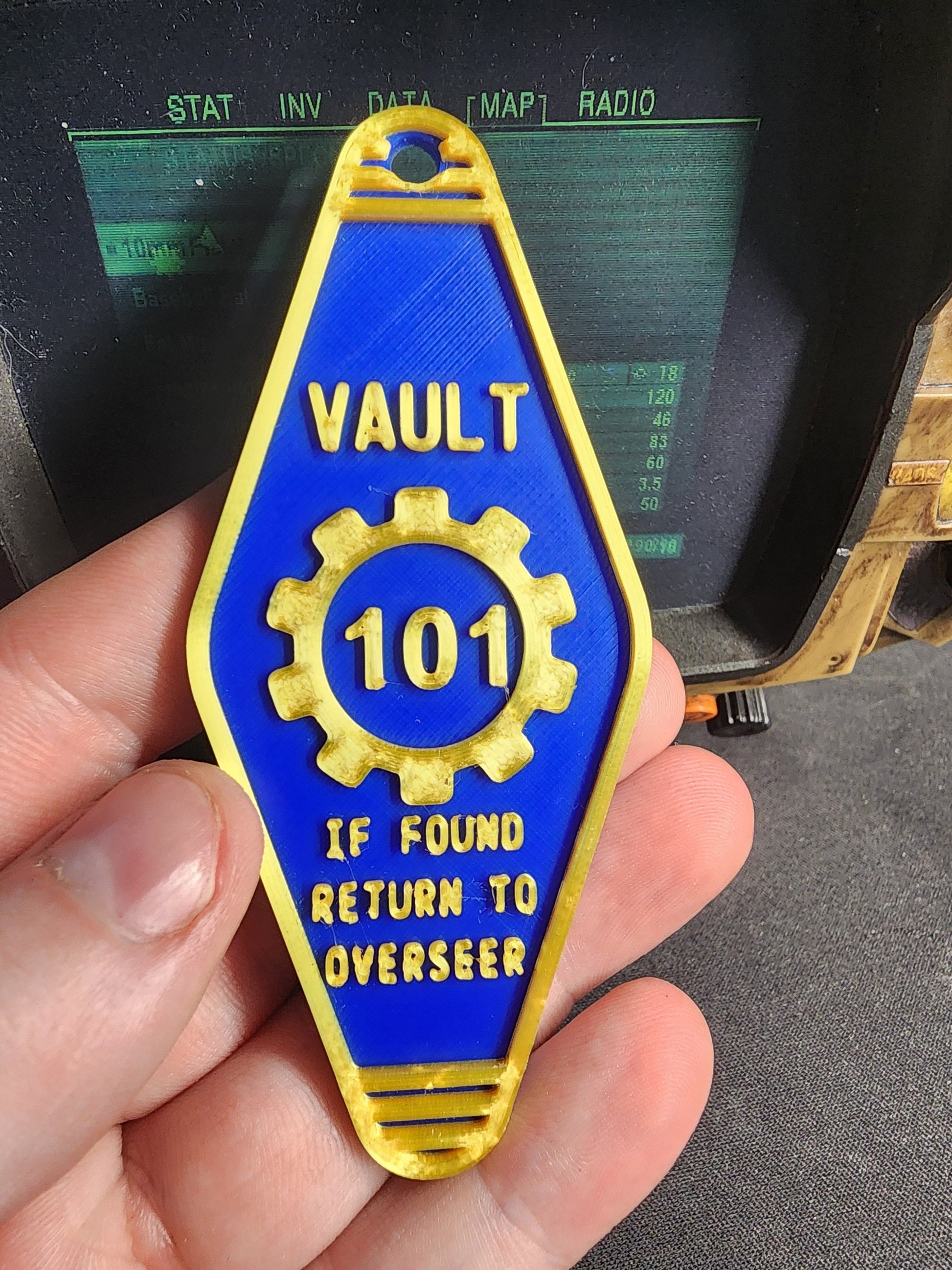 Fallout themed Vault Overseer 3D Printed Keychain. FULLY CUSTOMIZABLE