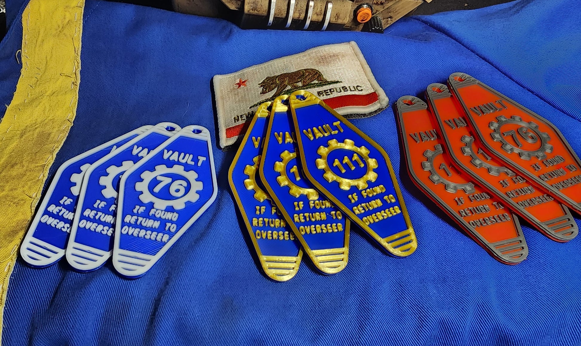 When it comes to customization you cant get any better, I have a variety of colors for you to pick and choose between, The primary color would be the main back color and the secondary will be the text and outline color. I can also add whatever vault number you want on the they keychain up to 3 digits So when ordering Please message me the vault number you would like to have on the keyring.